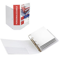 RACCOGLITORE PERSONALIZZABILE IN COLPAN® (CARTONE RIVESTITO IN PVC CON TASCA INTERNA E MECCANISMO A 4 ANELLI (A D. TASCHE TRASPARENTI SUL 1 QUADRANTE E SUL DORSO CHE CONSENTONO L'INSERIMENTO FACILITATO DELLA PERSONALIZZAZIONE. FORMATO ESTERNO: 260X310 MM. FORMATO CONTENUTO: 220X300 MM (A4. DORSO: 40 MM. DIAMETRO ANELLI: 30 MM. COLORE BLU.