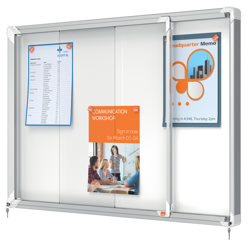 AD ANTE SCORREVOLI. NUOVO DESIGN CON ROBUSTA CORNICE IN ALLUMINIO E VETRO DI SICUREZZA DI 4MM. FONDO FONDO IN ACCIAIO BIANCO MAGNETICO PER USO CON MAGNETINI O SCRIVIBILE CON PENNARELLI A SECCO. FISSAGGIO SEMPLICE EFFETTUABILE DA UNA SOLA PERSONA. CHIUSURA CON DOPPIA SERRATURA. F.TO 8XA4: DIM.EST. 692X972X54MM