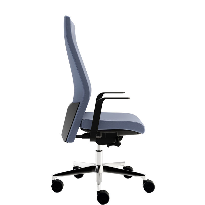 POLTRONA DIREZIONALE GIREVOLE CON ELEVAZIONE A GAS E POGGIATESTA- MECCANISMO SYNCRO CON 4 BLOCCHI ANTI SHOCK - BASE NYLON COLORE NERO. RIVESTIMENTO SEDUTA IN TESSUTO SUPER - KING L 100% TREVIRA REAZIONE AL FUOCO CLASSE 1. COMPLETA DI BRACCIOLI REGOLABILI E POGGIATESTA. ALT.TOT.: 123-135CM- PROF.TOT.: 70CM- ALT.SCHIENALE: 73+17CM- LARG.SCHIENALE: 48CM- LARG.SEDUTA: 48CM- PROF.SEDILE: 47CM- ALT. SEDILE: 42-54CM.