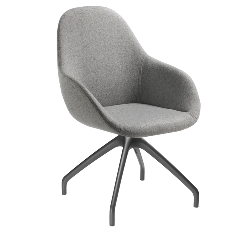 POLTRONA DIREZIONALEGIREVOLE - SCHIENALE FISSO - BASE ALLUMINIO PRESSOFUSO. RIVESTIMENTO SEDUTA IN TESSUTO ''SUPER - KING L'' 100% TREVIRA REAZIONE AL FUOCO CLASSE 1. ALT.TOT.: 77CM- PROF.TOT.: 62CM- ALT.SCHIENALE: 38CM- LARG.SCHIENALE: 47CM- LARG.SEDUTA: 50CM- PROF.SEDILE: 45CM- ALTEZZA SEDILE: 45CM.